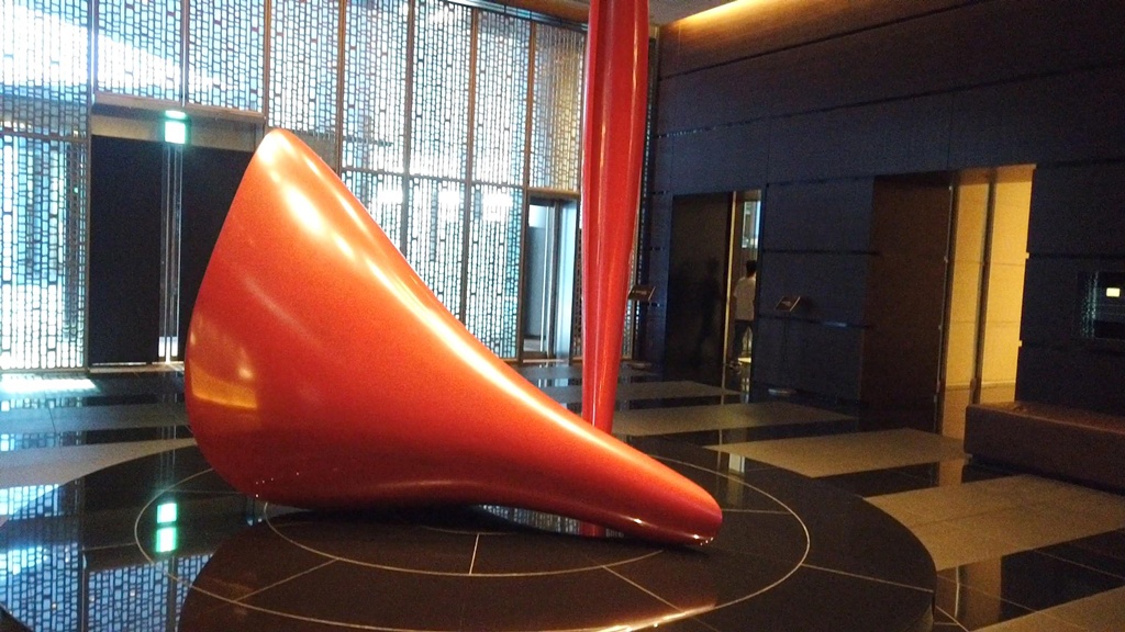 After passing through the lobby, highlighted by a striking red art installation, I was greeted by seasonal floral decorations, including Enkianthus perulatus.