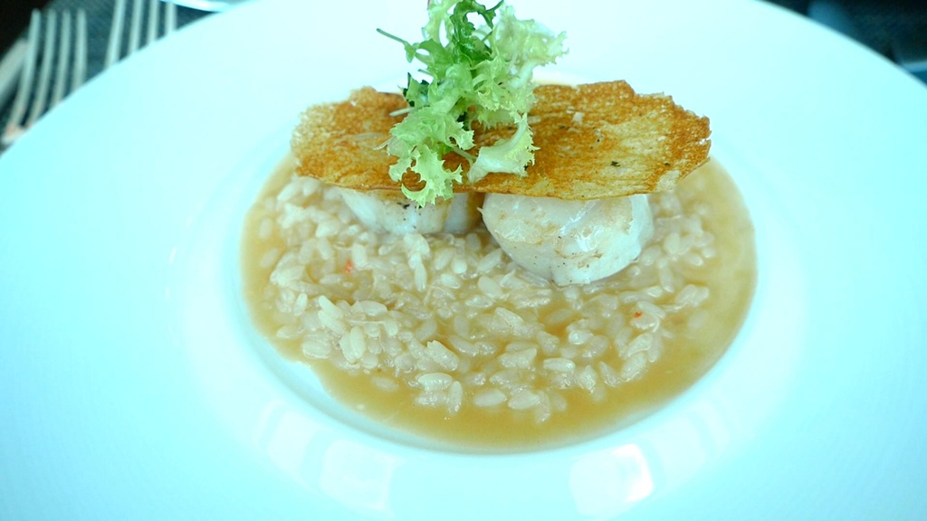 I chose pan-seared Hokkaido scallops with crab risotto and uni feuilletine.