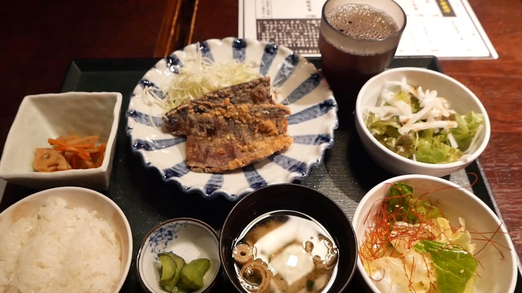 The fried mackerel set is juicy and flavorful, with sides like miso soup, kinpira, and spicy-seasoned cabbage—all home-style and carefully prepared.